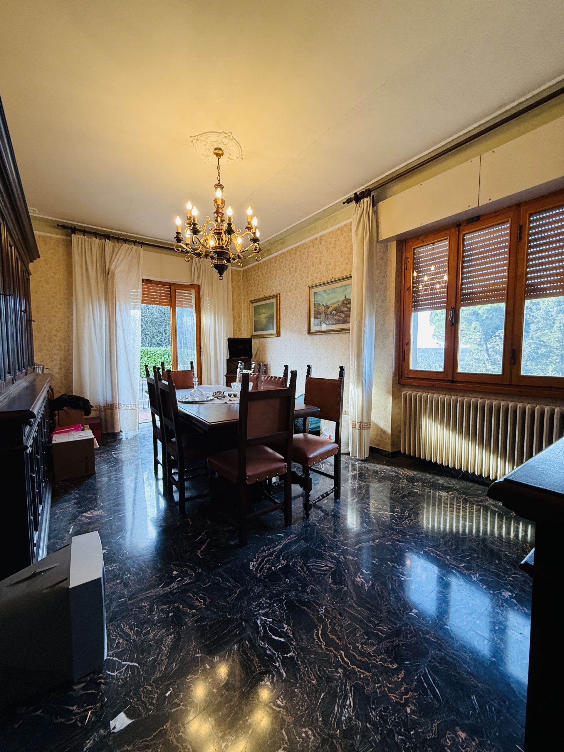L’ampia metratura di 371 m² commerciali si presta perfettamente per due o più nuclei familiari. La casa dispone di una grande zona giorno, una zona pranzo e una cucina ben attrezzata. Le due camere matrimoniali, altre due camere matrimoniali e zona studio oltre a due ampi bagni.